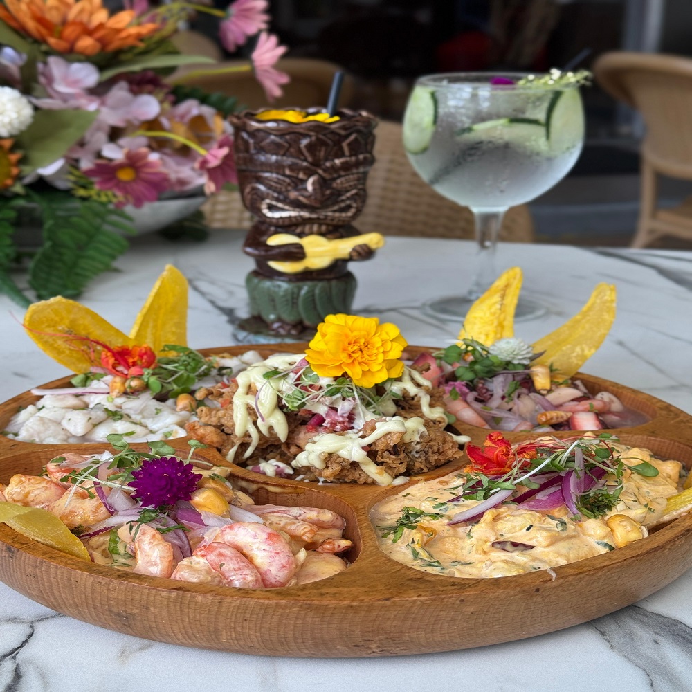 Bandeja de ceviches y cocteles para compartir.