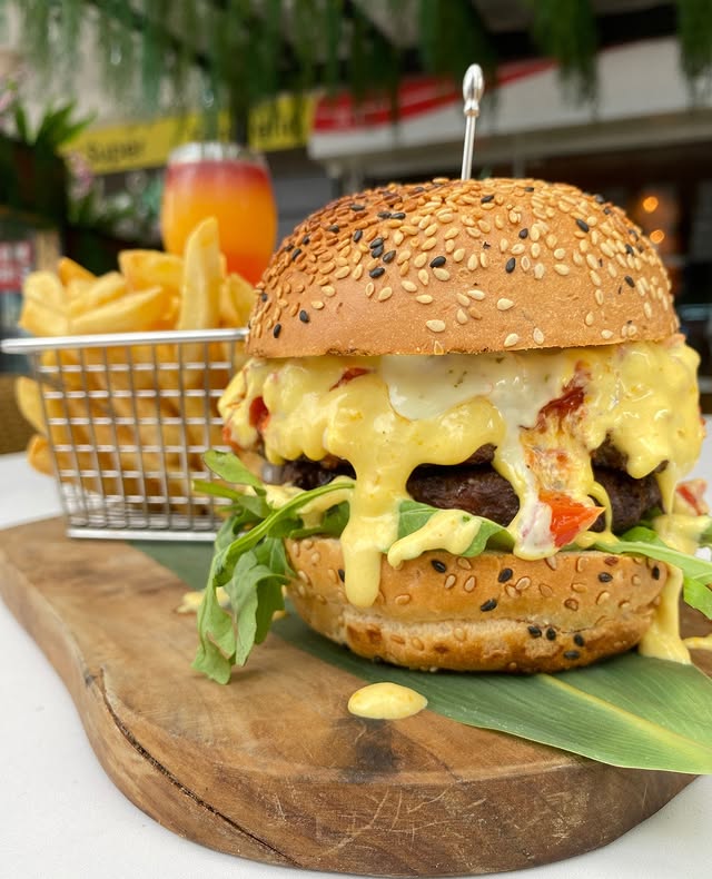 Carne angus, arúgula, igo, tomate rostizado y queso derretido